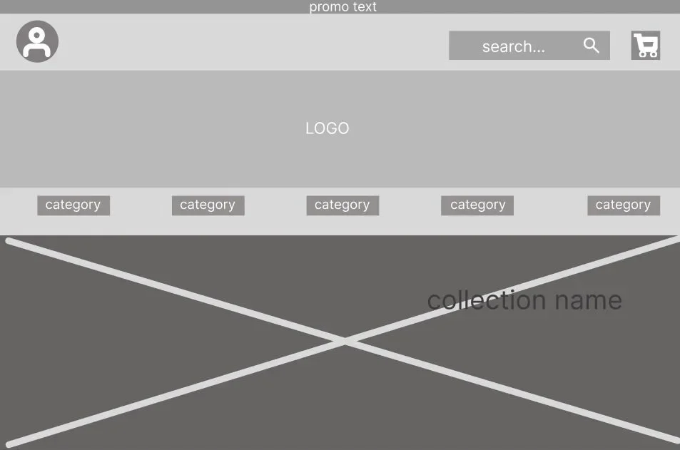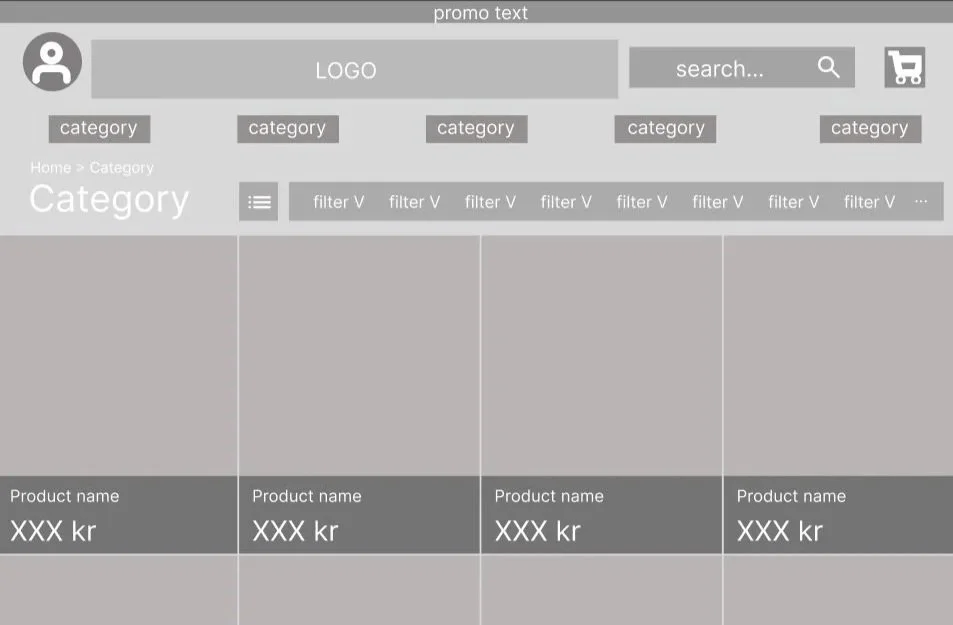 I started out by making simple wireframes based on my past experiences with web shops as well as looking at other jewelry shops for inspiration, such as Swarovski, Pandora and Thomas Sabo. I looked for common themes and features and picked out what I thought looked and worked best from all of them.