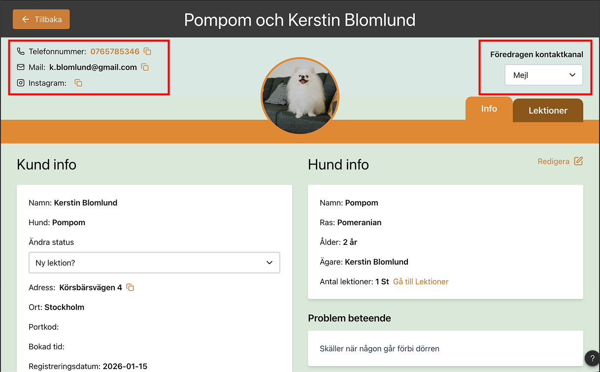 During the course we found a main problem; the two dog trainers had a lot of fragmented information regarding private lessons with dog owners and needed a system to easily access and administer this information.