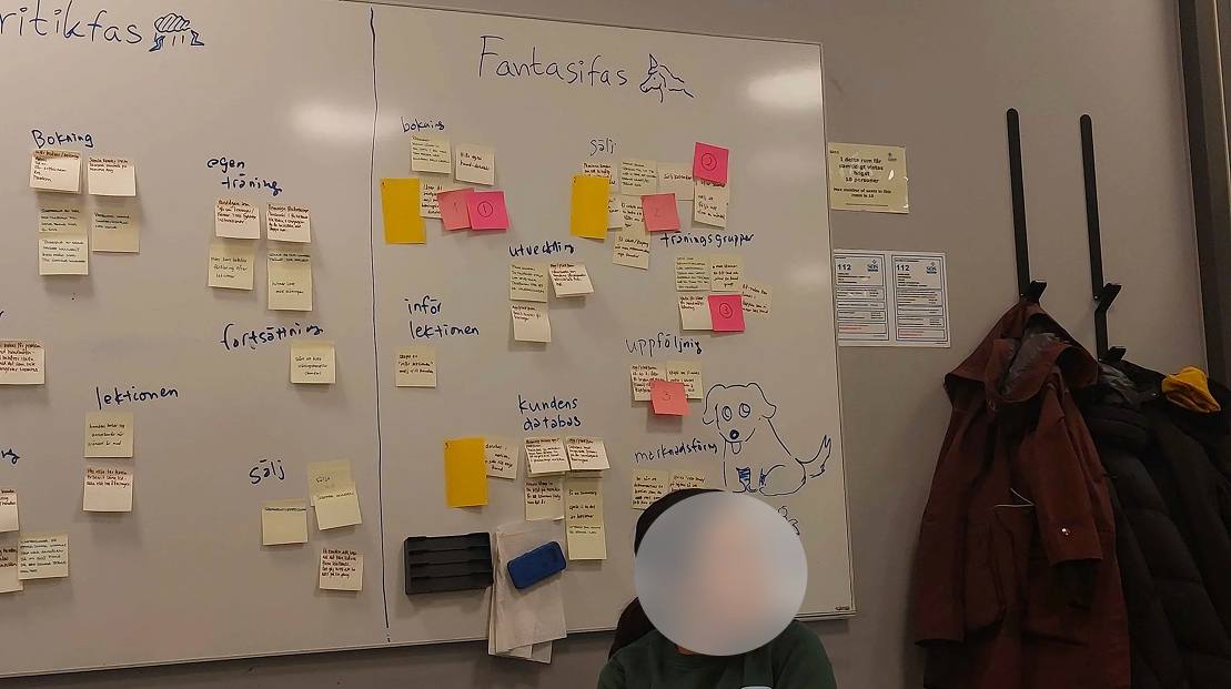 We met once again with the participants and performed brainstorming sessions with affinity mapping in order to find current problems and solutions within the business. A few different ideas came up, both from the customers perspective as well as the employees. After considering possible implementations we decided to move forward with designing an internal system for the dog trainers.