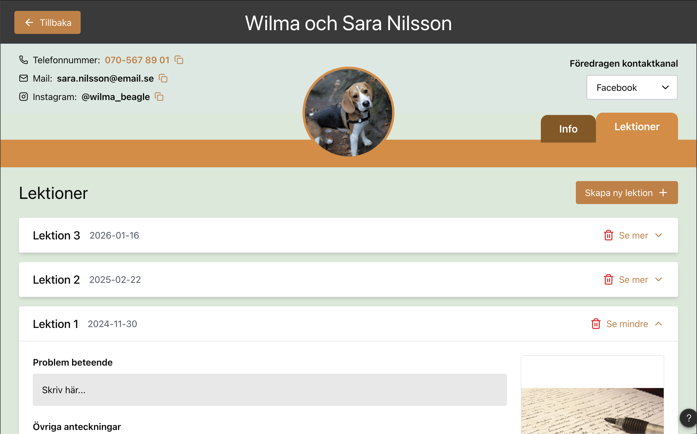 During the course we found a main problem; the two dog trainers had a lot of fragmented information regarding private lessons with dog owners and needed a system to easily access and administer this information.